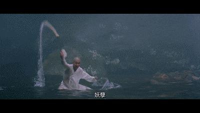 法海的“没忍住”相当于阿难输给了摩登伽女,这叫什么事?于是输了的法海又“嗔”了,他扬起拂尘、气急败坏地攻击小青(注意拂尘打到水面,又是火光冲天)。