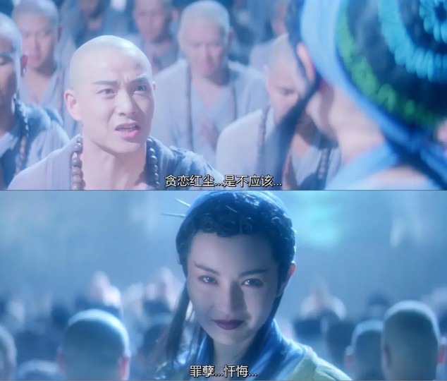 更重要的是,通过先前的论述,你已经明白:法海之“嗔”最初就是因人而起,可他无法面对这点、大概也没能意识到这点,所以他的“嗔”就只有从人往人世、往妖、往自己身上不断转移扩大。法海讨厌丑陋的人性、更讨厌人欲造成的这一人性,追根溯源,他其实一直在与人交战,可他却误以为在与妖作战。