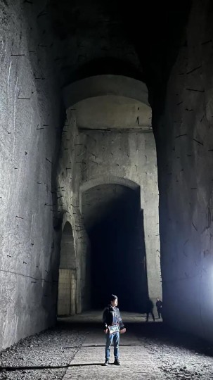 赵域:要申请,它其实也是一个旅游景点,对外售票的。它非常大,总面积超过10万平方米,130多条通道,18个大型洞室,光主洞室就高达近80米,整体差不多20多层楼那么高,相当于贯穿了一整个山体。