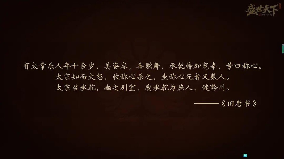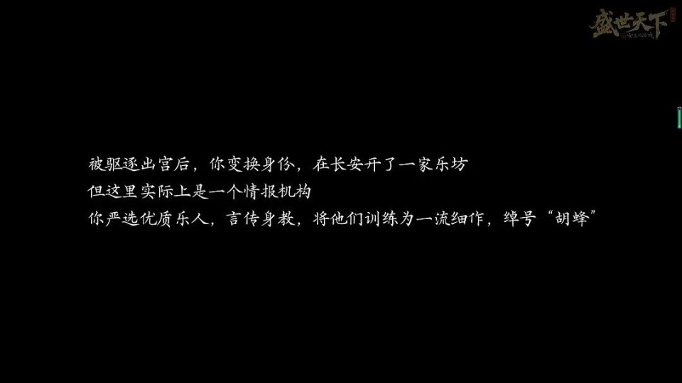 5,有一首BGM跟“明末”里打夜夫人时的那首BGM很像……是一首旋律很诡异的音乐,但挺喜欢的我,《明末:渊虚之羽》那首叫《孽爱》,不知道《盛世天下》里用的是不是同一首音乐,除了剧情以外,有时候在故事线里停留的BGM也能听到,不知道大家有没有发现呢?就是那个变奏很像。