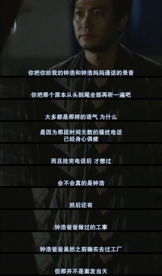 其实到了末尾我几乎已经快要相信被姜志胜怀疑的那个屠夫就是杀人凶手了,但该片的破案过程相较于《杀人回忆》实在是太顺了。 但仔细一想破案的过程其实是由主角姜志胜的主观视角进行判定的,影片到了后面像开了金手指一样的展示着证据:“你看啊,他绑书的绑绳方式跟绑孩子的方式好像”“你看啊,他刚好是一个屠夫,他用来杀牛的工具是不是也跟杀孩子的凶器相似”……但这些真的能用来当做证据吗?会不会是荧幕里的姜志胜和荧幕外的我们太想要确认一个凶手,所以刻意忽略了一些细节,犯了跟黄教授同样的错呢? 结合前面的“认知失调论”,那么到了片尾对那个“按照影片节奏几乎可以被明确定义为凶手”的凶手的怀疑会不会也是影片刻意为荧幕里的姜志胜和荧幕外的我们精心设置的一场“认知失调”呢?