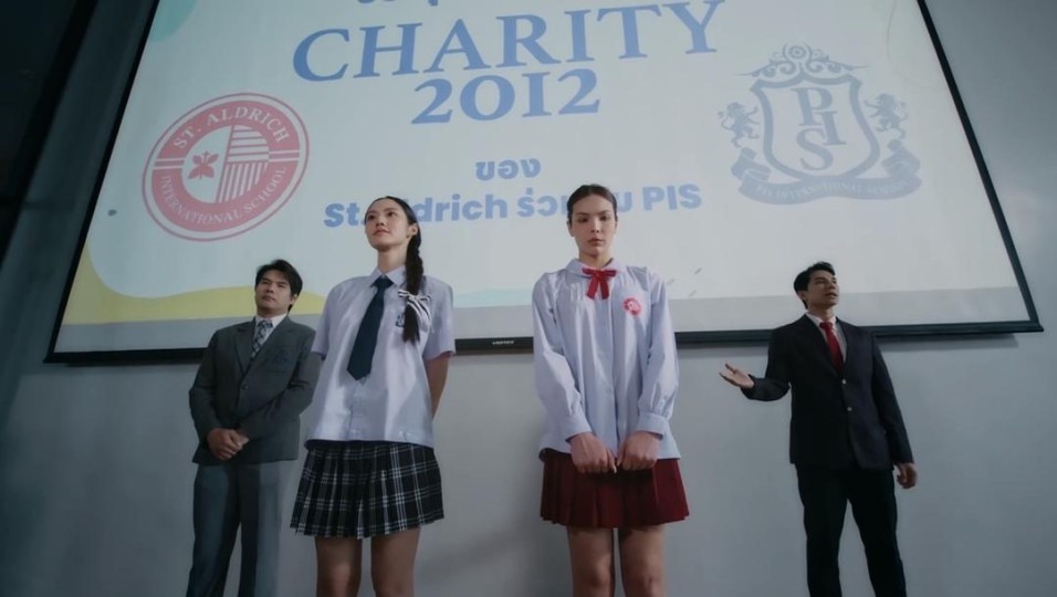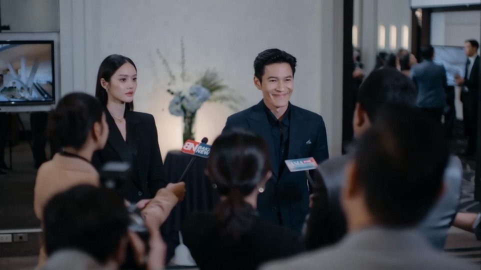 LMSY在演戏方面的天赋大家都有目共睹,但仅靠天赋吃老本在内卷严重的泰百是闯不出名堂的,况且她们对精进自身演技也有追求,体现在每次演技与形体的workshop都认真参与,原著和剧本都吃懂吃透。当资优生比普通学生还努力,笔者可以自豪地说:喜欢LMSY是一件很幸福的事情。 令人欣慰的不只是莓药演技的稳定发挥,目前已出场的配角虽然不多,却没有出现特别违和的演绎。编剧要记头功,她设定了泾渭分明的配角性格,能方便演员更好找到角色定位。老戏骨自不必说,年轻演员如两位秘书、炮灰男配、反派男配也都能够把自己沉进角色里,达到了及格线以上的水平。不浮躁、不敷衍、不取巧的用心,观众一定感受得到,感受不到的是时间的流逝,让人怅然若失:怎么一集那么短呢? 💡2.运镜剪辑篇:镜头语言的合理运用