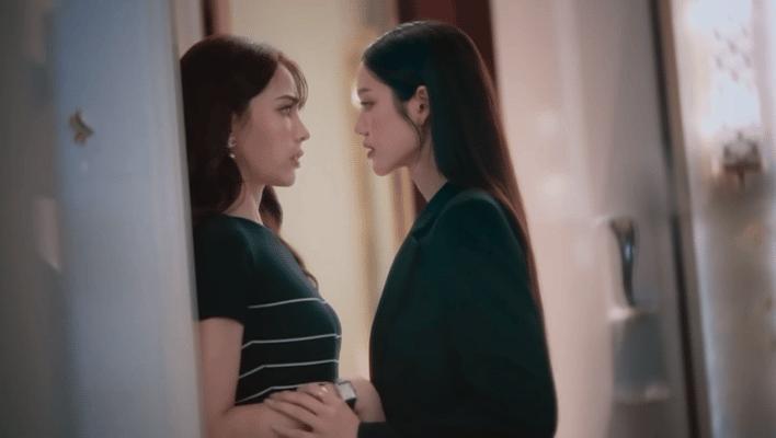Ai对着Mae的唇印饮下一口红酒时,Mae瞳孔放大的目光随着Ai的嘴唇游移到她的眼睛,观众会发现她微抬的眼眸中呈现出了某种期待,而非全然只有震惊。 之前先导预告片中酒吧场景的台词只到“戳普银哦”就结束了,Ai留下一个意味深长的眼神,笔者总觉得不够尽兴,因为Ai的性取向几乎是明牌的。但正片里编剧给Ai补了一句台词“如果是,那怎样呢”,轻而易举就把问题又抛回给Mae,这样的留白更有意思。性向混沌期的Mae会如何回答呢?吊足了观众的胃口。