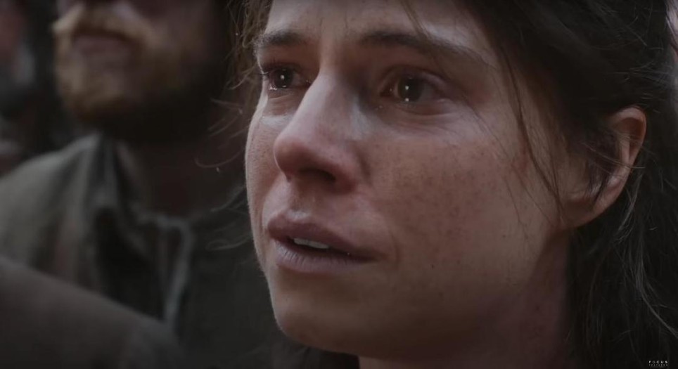 影片对原著小说进行了重要改动,将原来的非线性叙事改编为相对线性的三幕结构,循序渐进地呈现莎士比亚和艾格尼丝初见、相恋、组建家庭、面临悲剧和艺术升华的过程。在16世纪英格兰乡野的古朴光影中,年轻的莎士比亚(保罗·麦斯卡饰)以家庭教师身份结识了隐居乡间的艾格尼丝(杰西·巴克利饰)。和她的母亲一样,她天生亲近,离群索居,被村里人贬低为“怪异的森林女巫”。她超脱凡俗的灵性气质吸引了试图逃离原生家庭控制的莎士比亚,尽管受到家人反对,艾格尼丝和莎士比亚义无反顾地相恋。在静谧而灵动的氛围中,他们在乡间草地上奔跑嬉戏。时间在光影流动中悄然流逝,他们成家并有了第一个女儿苏珊娜,过着田园诗般的安宁生活。