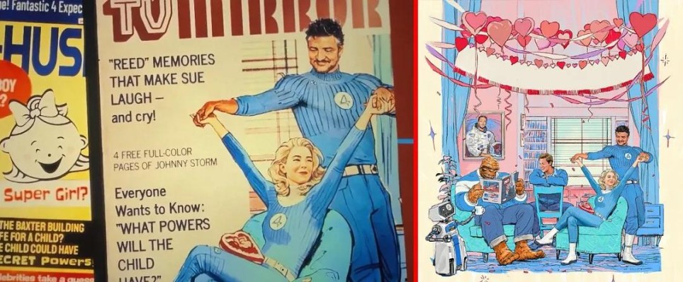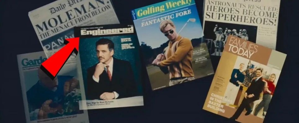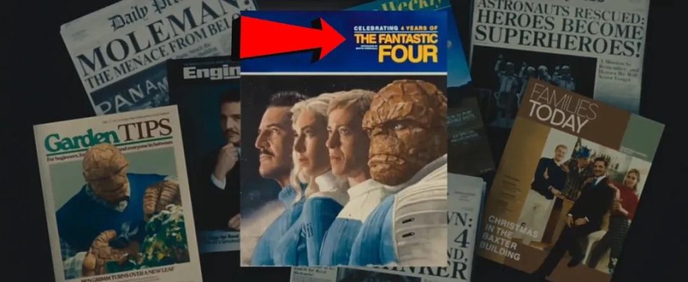 《神奇四侠》情人节海报中,石头人翻阅的《生活》杂志封面是林登·约翰逊,1963年他因肯尼迪遇刺继任总统,暗示即便肯尼迪在这个宇宙幸存,总统之位依然易主。