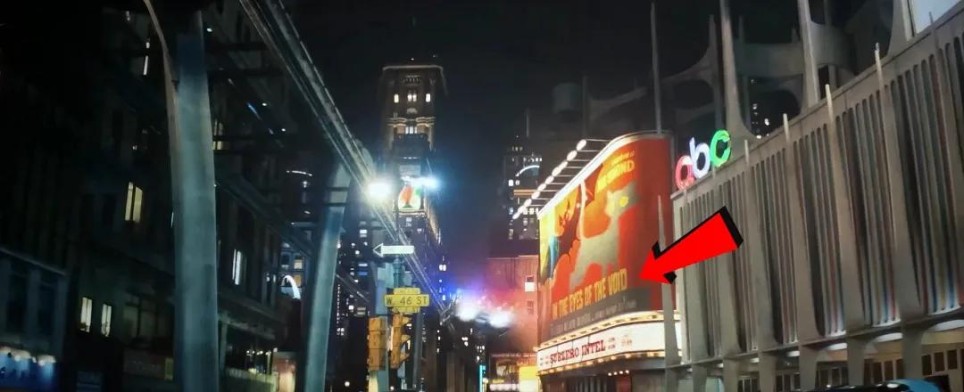 广告牌上印着"虚空之眼",暗示《洛基》《死侍与金刚狼》中的虚空之地,将在《复联5、6》成为斗界,同时对哨兵的虚无人格致敬。