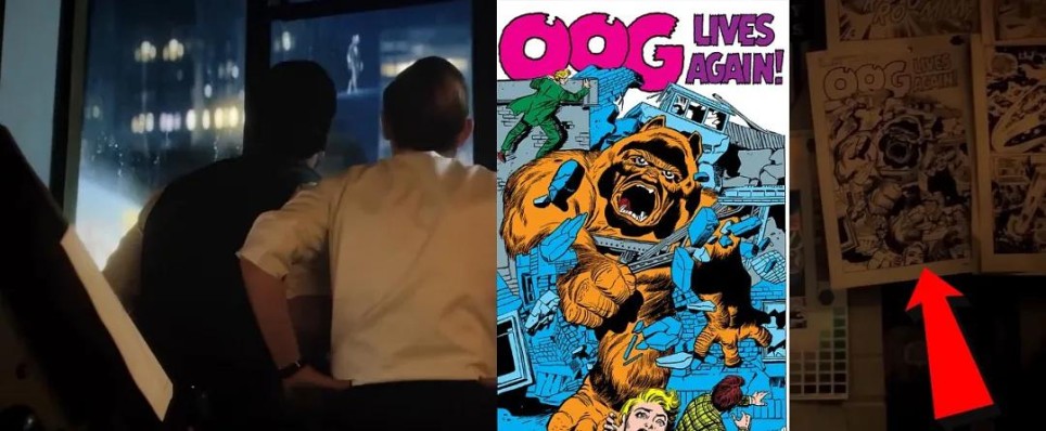 杰克·科比正在绘制巨怪草图,电影开场四侠对战的怪兽,这一场景精准还原了杰克·科比1961年创作《神奇四侠》首刊封面的历史时刻。