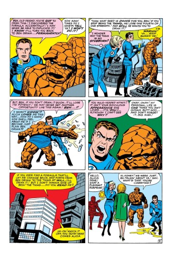 电视中石头人喊出"痛扁时间",这是他的招牌战斗口号,最初出现在1964年《神奇四侠》第22期,彼时他正与宿敌鼹鼠人展开激战。