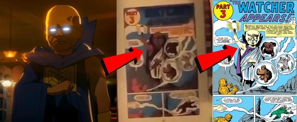 这是《神奇四侠》第13期的经典画面,观察者在漫画中首次登场,阻止红色幽灵和超级猿猴大闹月球。