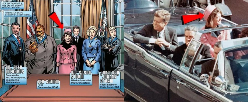 漫画发生在四侠获得超能力(1961年)与电影(1965年)之间,正好包含肯尼迪遇刺(1963年)的时间。