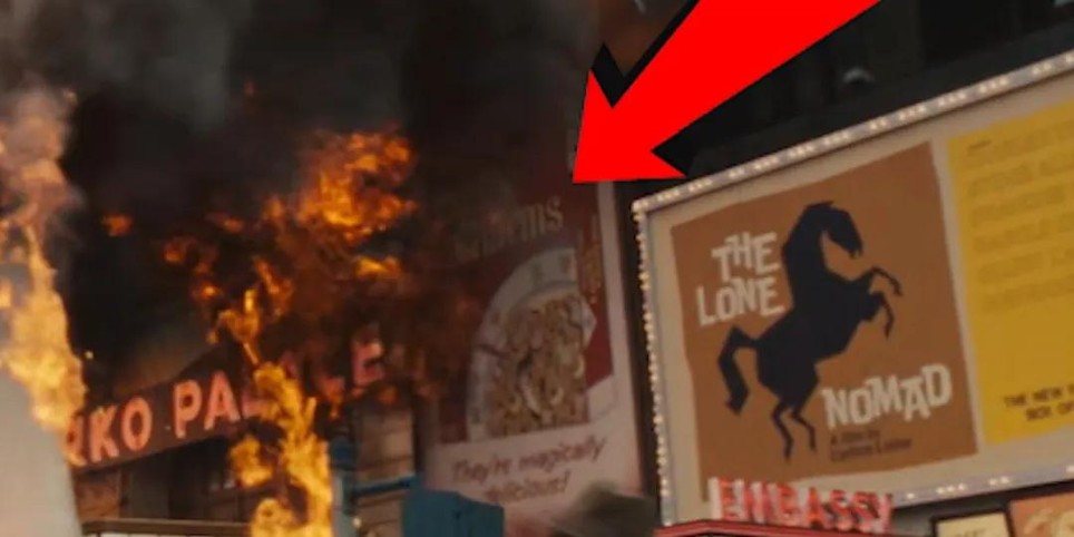 街景中的《孤独游侠》(The Lone Nomad)的电影海报,正是该宇宙的《游侠传奇》(The Lone Ranger),上映于1938年,2013年被翻拍为同名电影《独行侠》(英文名相同),约翰尼·德普主演。