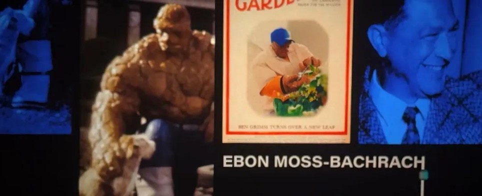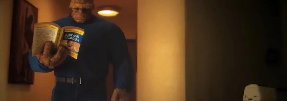 这时响起了迈克·吉亚奇诺创作的《神奇四侠》主题曲,他还曾为《奇异博士1》、荷兰弟版《蜘蛛侠》三部曲、《新蝙蝠侠》配乐。