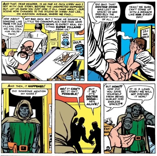 斯坦·李和杰克·科比确实曾在漫画中玩"元叙事",不仅让《神奇四侠》漫画成为故事里的出版物,更构思过"毁灭博士闯入编辑部"的疯狂桥段。