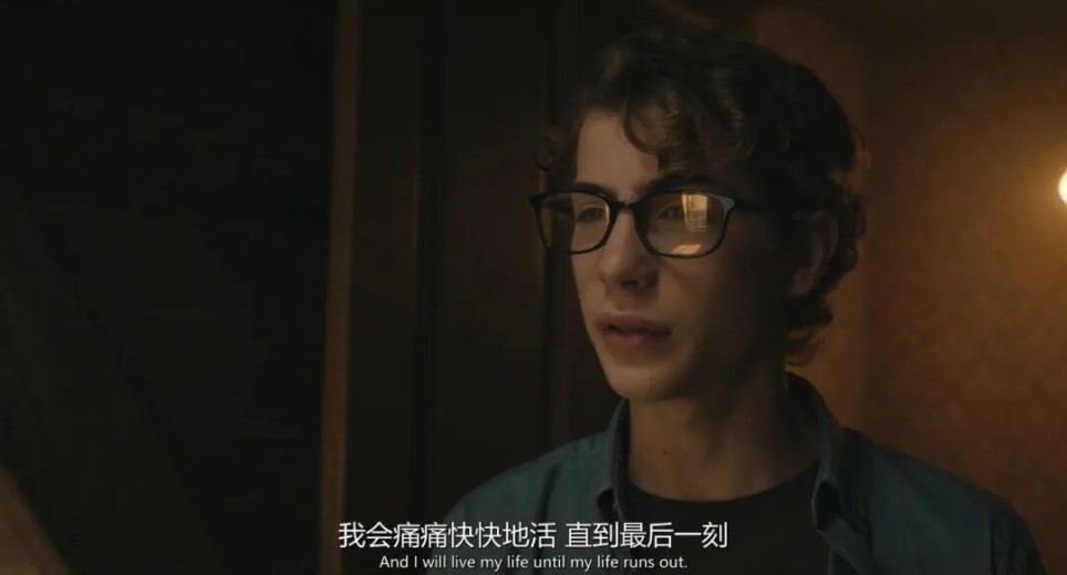 这一幕的结尾,定格在病床上39岁查克的死亡与世界停转之时。我赫然开朗,原来片中的这个宇宙,只是查克左右太阳穴之间的距离——他脑海中孕育的世界。